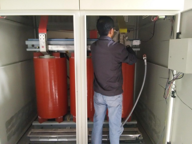 5月10日,市供電公司專業(yè)人員及物業(yè)管理部高低壓電工準(zhǔn)時到場,有序地對6臺變壓器及17面高壓進(jìn)線柜、29面低壓柜、電容補償柜等設(shè)備進(jìn)行了交流耐壓試驗、直流耐壓試驗、直流電阻試驗、變比試驗、回路電阻試驗、開關(guān)測試試驗、介質(zhì)損耗角試驗、絕緣試驗及接地電阻等試驗,并對柜內(nèi)所有接線端子、螺栓、儀器儀表、繼電器等部件進(jìn)行了清潔、檢測和調(diào)試。