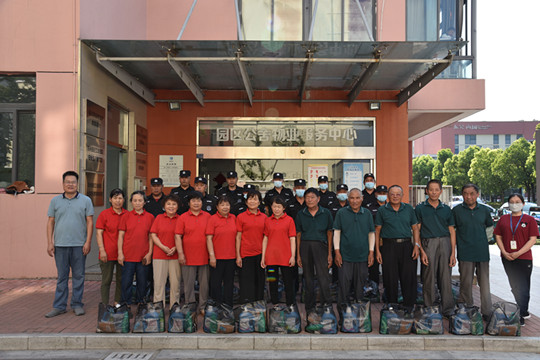 為切實(shí)維護(hù)一線人員的健康權(quán)益,更好地為員工辦好事實(shí)事,7月25日下午,公司副總經(jīng)理倪松帶隊(duì)慰問(wèn)了奮戰(zhàn)在一線的保安、保潔崗位的工作人員,為他們送去了防暑降溫物品及公司的關(guān)懷,并再三叮囑,在夏季高溫時(shí)段要注意休息,勞逸結(jié)合,防止高溫中暑,對(duì)他們?yōu)閳@區(qū)所付出的辛勤勞動(dòng)表示衷心感謝。