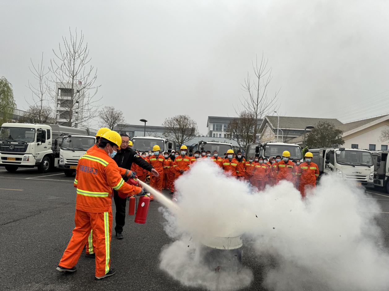 培訓(xùn)會上,江蘇安城應(yīng)急技術(shù)有限公司孫教官結(jié)合火災(zāi)事故案例,以圖文并茂的形式告誡大家消防安全的重要性;孫教官還向所有環(huán)衛(wèi)工人講述了日常生活中用電、用氣安全注意事項,詳細講解了火災(zāi)發(fā)生后的自防、自救和逃生技能,重點培訓(xùn)滅火器、滅火毯等消防設(shè)施的使用方法,并帶領(lǐng)所有人員開展了滅火器使用實戰(zhàn)演練。