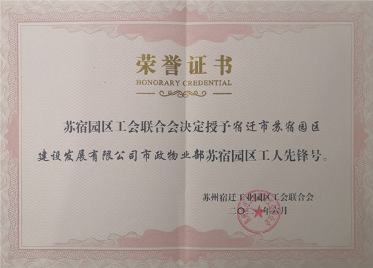 近日,建發(fā)公司市政物業(yè)部被蘇宿園區(qū)工會聯(lián)合會授予“蘇宿園區(qū)工人先鋒號”榮譽(yù)稱號。