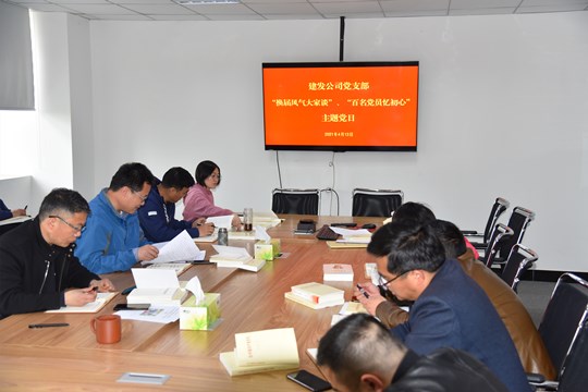 4月13日下午,建發(fā)公司黨支部召開黨史學(xué)習(xí)教育集中學(xué)習(xí)會(huì),并開展“換屆風(fēng)氣大家談”、“百名黨員憶初心”主題黨日活動(dòng)。公司全體黨員、發(fā)展對象和入黨積極分子參加活動(dòng)。