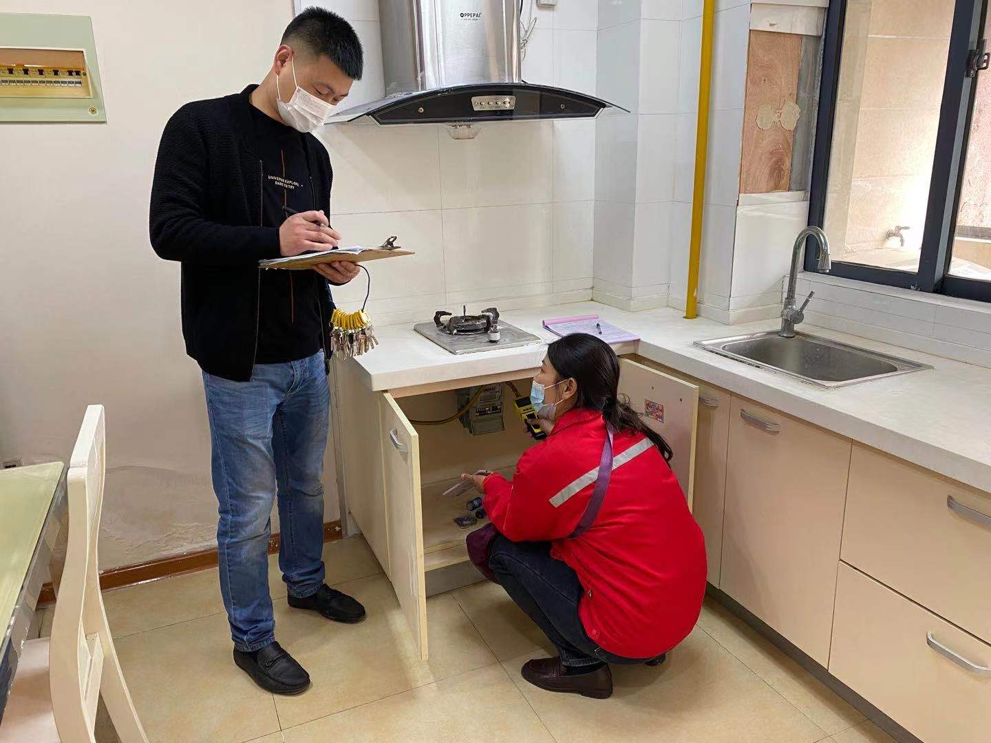 此次重點檢查天然氣接口軟管是否老化,燃?xì)庠罹呤欠裼邢ɑ鸨Wo措施,燃?xì)忾y門是否正常使用。在檢查過程中,發(fā)現(xiàn)了人走未斷氣、廚房操作間操作不通風(fēng)、線路交叉重疊等現(xiàn)象,客戶均能配合整改。