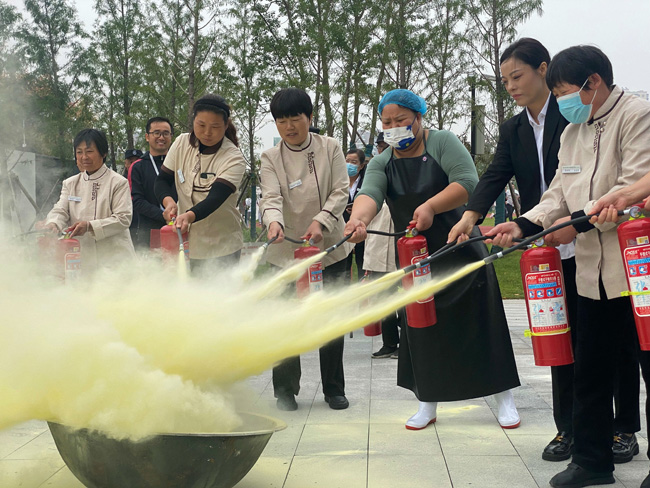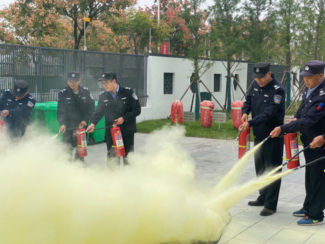在活動(dòng)現(xiàn)場,安全員向參與人員講解了如何正確使用滅火器方法和技能,總結(jié)了“提、拔、握、壓”四個(gè)步驟,并進(jìn)行了使用方法的演示。保安、保潔人員輪流進(jìn)行實(shí)際操作,逐步掌握滅火器的使用方法。
