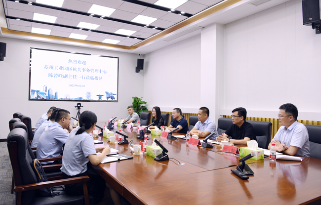 8月4日下午,蘇州工業(yè)園區(qū)機(jī)關(guān)事務(wù)管理中心陳若峰副主任一行到建發(fā)公司調(diào)研。園區(qū)黨工委委員、管委會副主任張漢華出席座談會,城發(fā)公司、建發(fā)公司管理層陪同調(diào)研、座談。