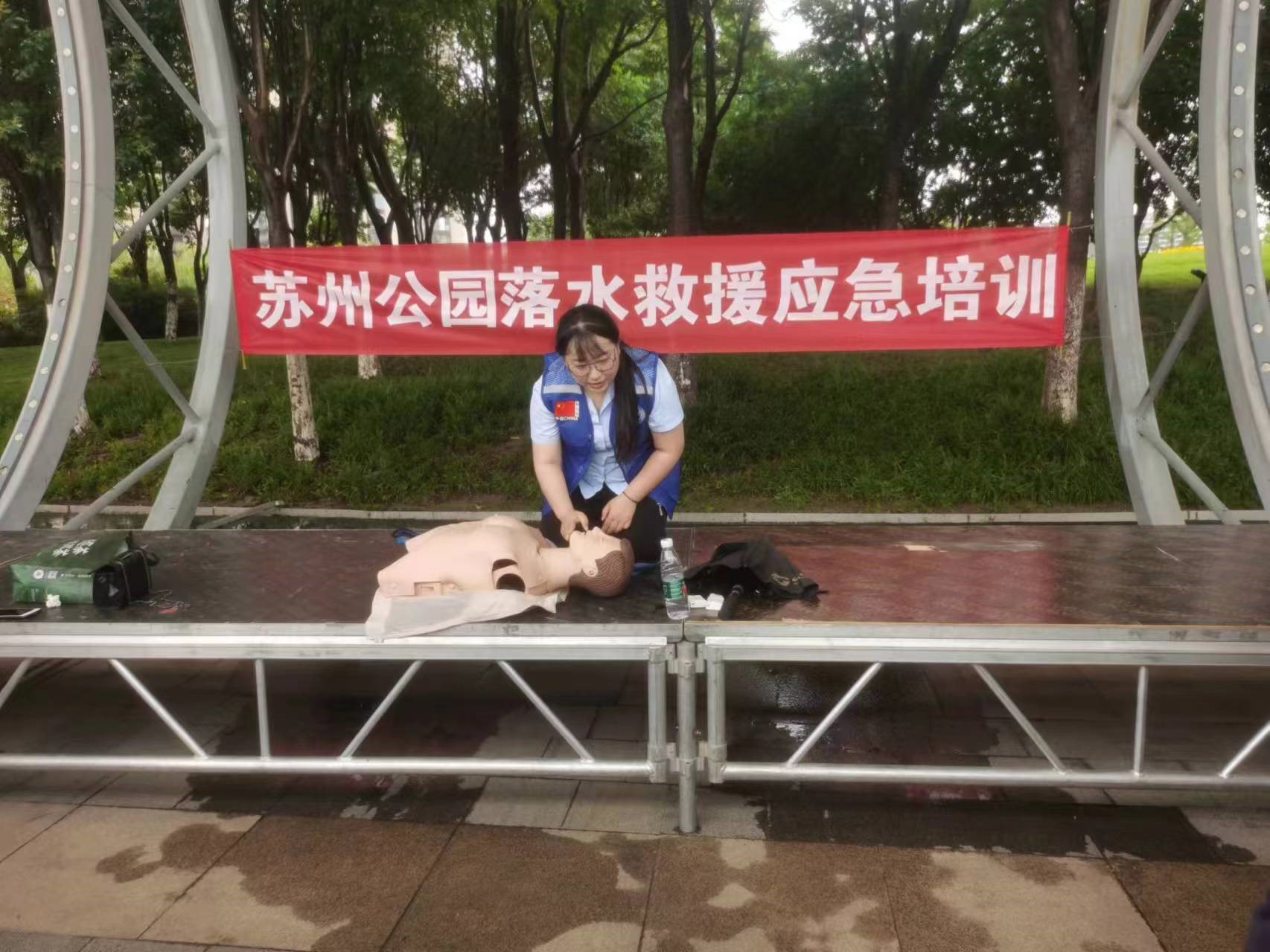 培訓(xùn)現(xiàn)場,藍(lán)天救援隊(duì)救援人員從溺水概論、溺水現(xiàn)場救護(hù)、溺水預(yù)防三個方面詳細(xì)講解了防溺水知識及技能,同時使用人體模具演示了溺水后心肺復(fù)蘇急救方法,隨后,參訓(xùn)人員進(jìn)行了實(shí)操練習(xí)。
