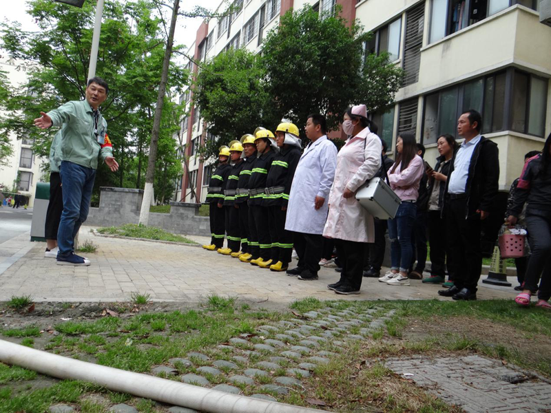 演練開始,物業(yè)部安全員首先講解了消防知識及逃生注意事項,隨后進行人員緊急疏散、傷員救護及火場滅火演練。