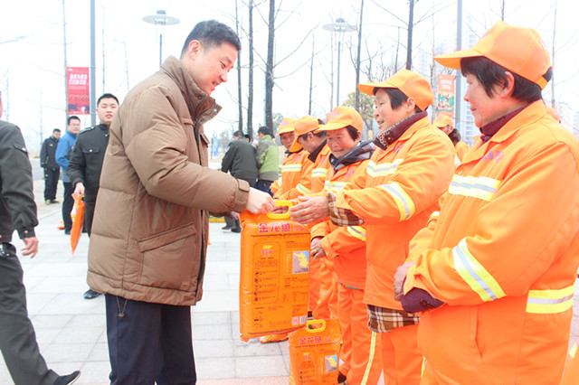 1月18日上午,園區(qū)黨工委委員、管委會副主任、規(guī)劃建設局局長許紹杰帶隊慰問了奮戰(zhàn)在一線的城市維護作業(yè)人員,向他們送上了春節(jié)的問候。