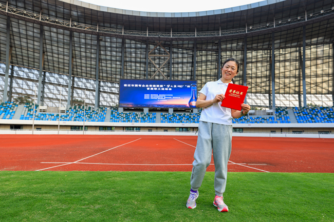 運動場上,建發(fā)公司桑曉芳以5分57秒33毫秒領先第二名12秒之多的絕對優(yōu)勢斬獲女子青年組1500米田徑賽金牌。