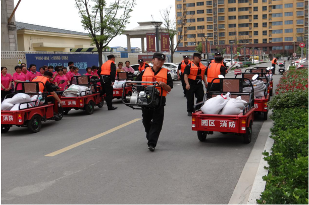 雨季即將來臨,為增強(qiáng)應(yīng)對(duì)汛情的反應(yīng)和處置能力,提升公司物業(yè)項(xiàng)目防汛應(yīng)急搶險(xiǎn)水平,6月7日下午,公司物業(yè)管理部在園區(qū)公舍西楚金地商城舉行了防汛搶險(xiǎn)應(yīng)急演練。演練共出動(dòng)30名保安、10名消防官兵,8臺(tái)應(yīng)急搶險(xiǎn)電動(dòng)三輪車,2臺(tái)消防車,準(zhǔn)備了沙袋120袋。