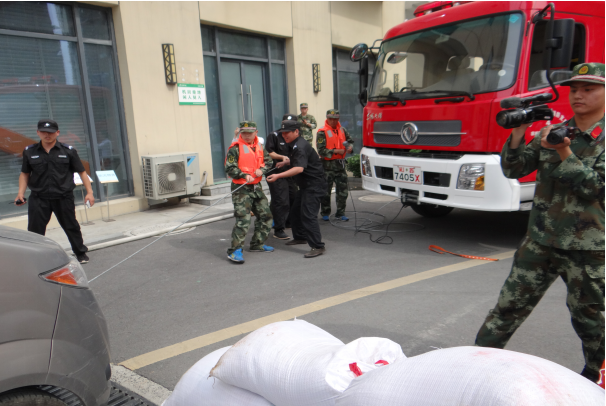 演練假設(shè)大雨來臨,汛情緊急。各隊(duì)員迅速各就各位,一部分隊(duì)員及時(shí)處理現(xiàn)場(chǎng),設(shè)置警戒,快速疏散現(xiàn)場(chǎng)人員及車輛;另一部分隊(duì)員齊心協(xié)力,共同協(xié)作利用防汛工具緊急排險(xiǎn),有效排除現(xiàn)場(chǎng)積水。搶險(xiǎn)結(jié)束后,機(jī)械設(shè)備有序撤離現(xiàn)場(chǎng)。